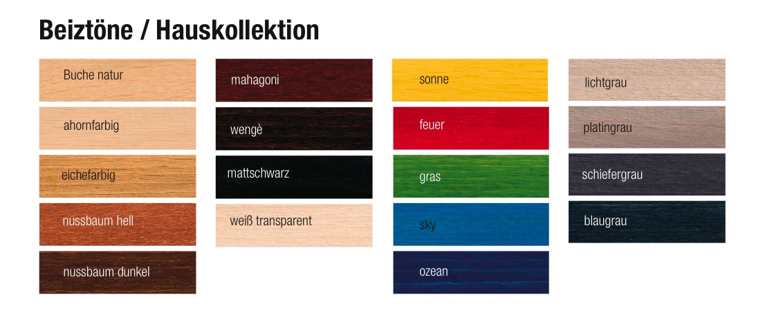 Grund- und Decklackierung ausschließlich mit lösungsmittelfreiem Wasserlack. Die Lacke und Beizen entsprechen den gesetzlichen Bestimmungen für den Objektbereich. Die Lackierung in Verbindung mit Massivholzteilen gilt als feuerhemmend laut ÖNORM A 1605 Teil 12