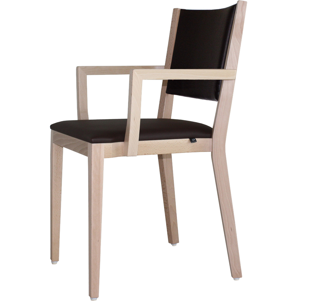 Ihr neuer, hochwertiger Seniorenstuhl besteht aus einem stabilen Rahmen, dessen Teile durch Minizinken verbunden und zusätzlich mit Spiraldübeln verstärkt sind. Die gerade Armlehne aus Massivholz sowie die Verbindung vom Hinterfuß mit dem Rahmen sind sowohl verleimt als auch zusätzlich verschraubt bzw. verdübelt. Der Altenheimstuhl optional mit Brandschutznorm B1 bietet eine Rückenlehne aus 10 mm starkem Formholz, das zwischen den Hinterfüßen eingezapft und verleimt ist. Unser hochwertiger Seniorenstuhl ist durch seine gebogene Kontur am Rücken besonders komfortabel. Nach unten hat die Rückenlehne eine Ausnehmung von 5 cm.