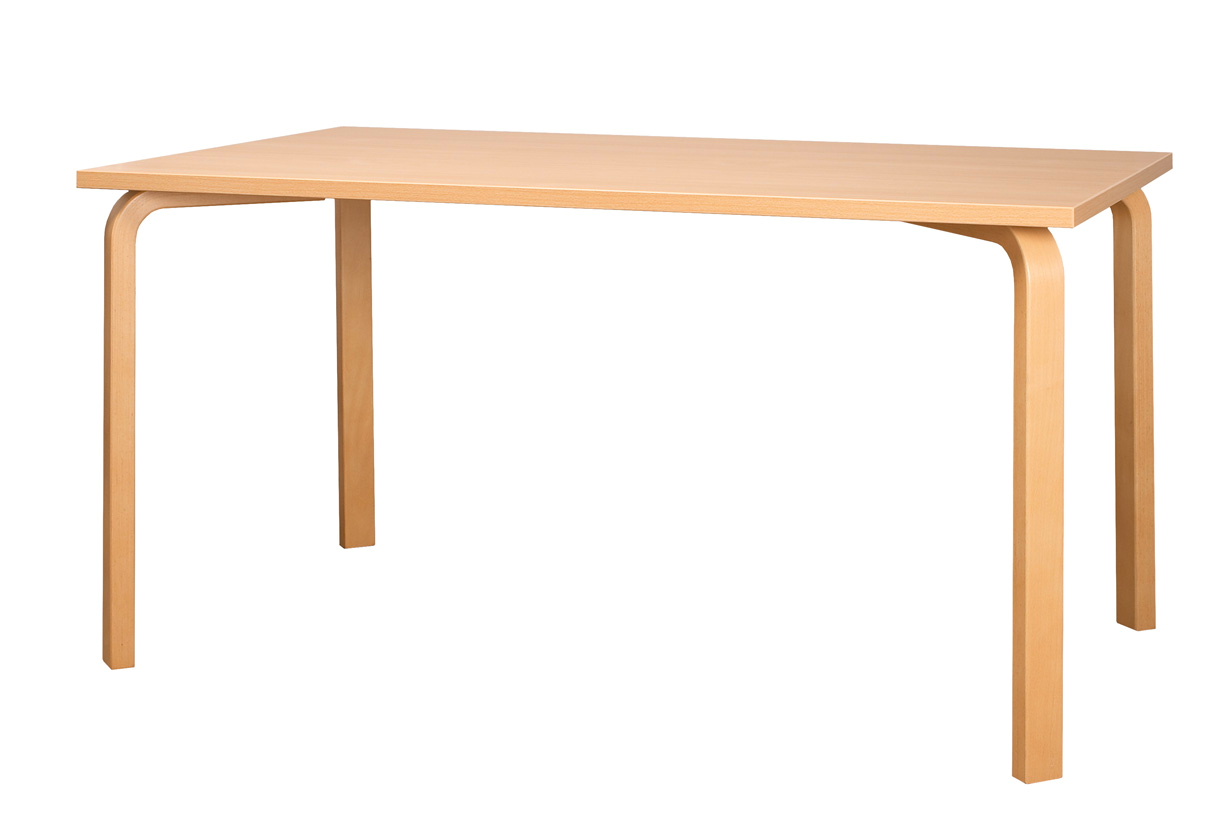 Vierfußtisch Modell KO SCHH mit fingerverzinkter Kurzzarge Schichtholzwinkel, Fußform rechteckig, gerade. Standard Dekor Buche. Melaminharzplatte 25 mm, mit ABS Kante. Tischhöhe 75 cm