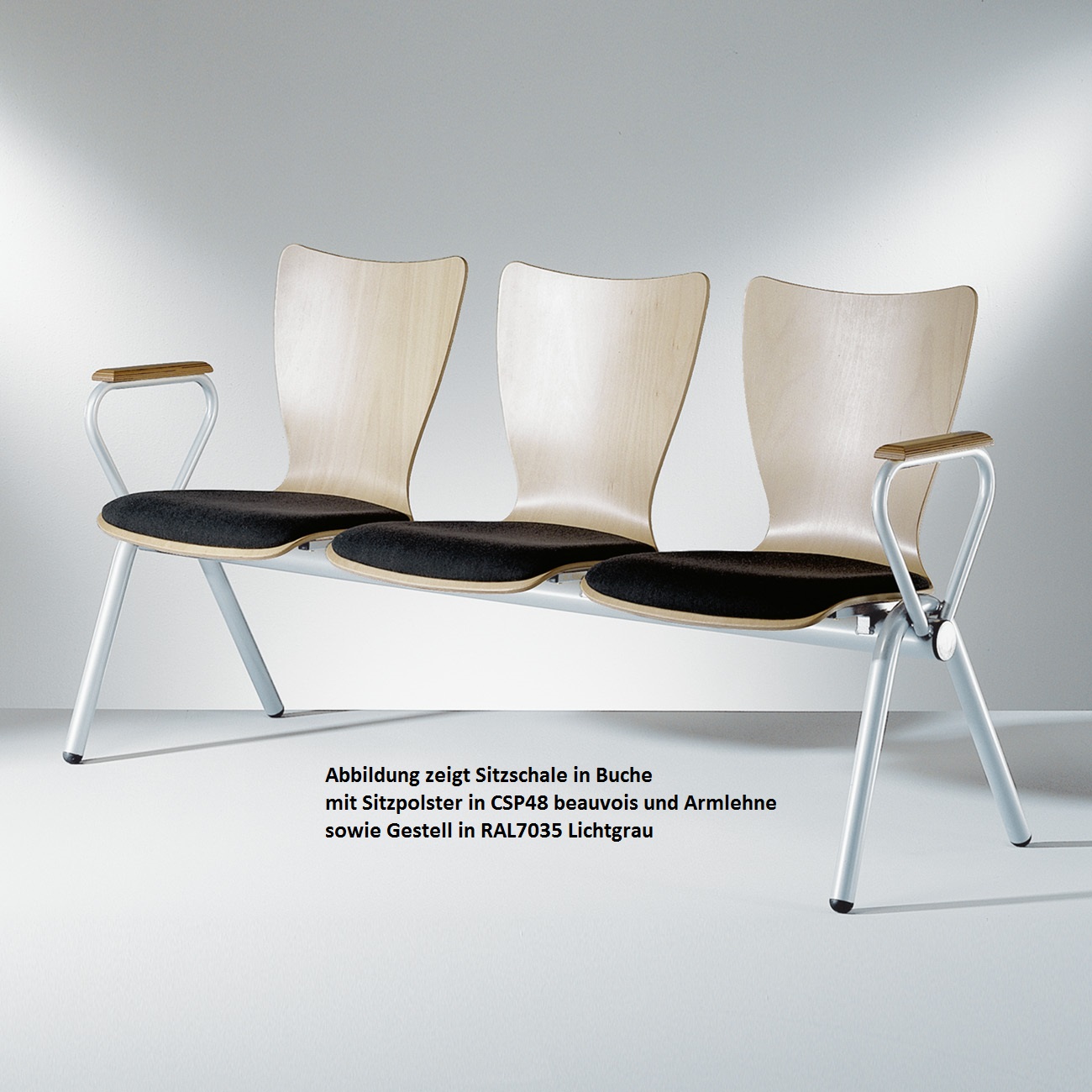 Armlehnen: Stahl-Rundrohr Ø 30 x 1,5 mm pulverbeschichtet mit Schichtholz-Armauflagen.